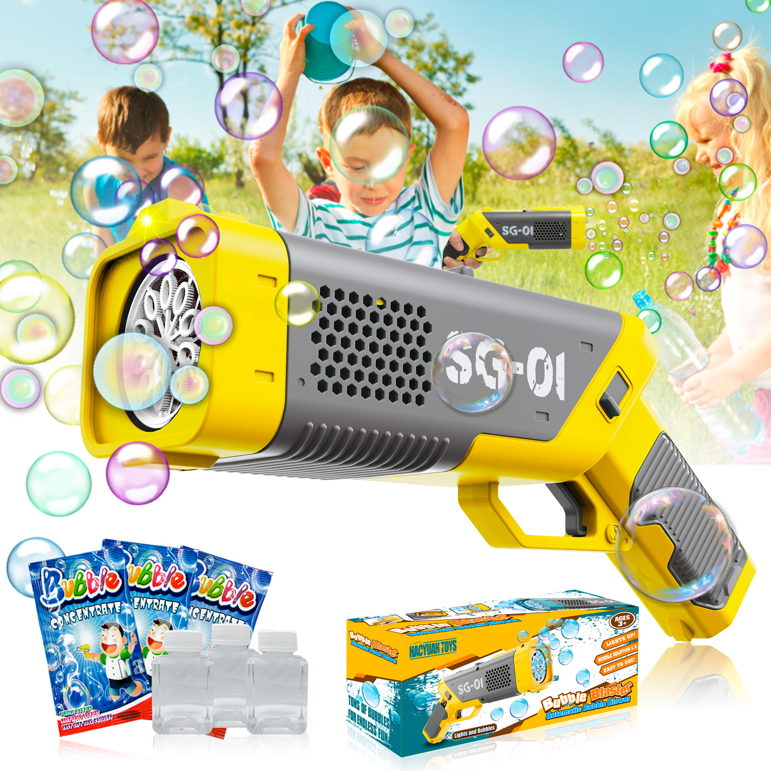 Romanda Bubble Gun For Kids Light Up Bubble Machine Blower Toys With Bubble Solution Fun Summer Indoor And Outdoor Birthday Party Gifts For Age 6 7 8 9 Years Old Toddlers Boys Girls